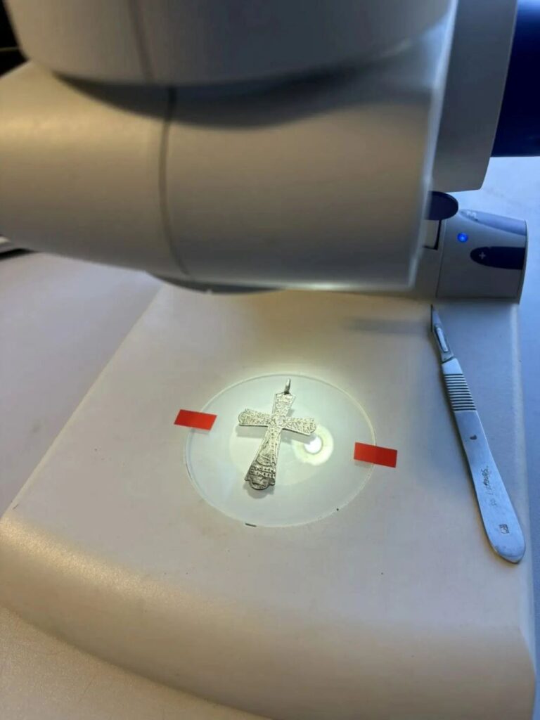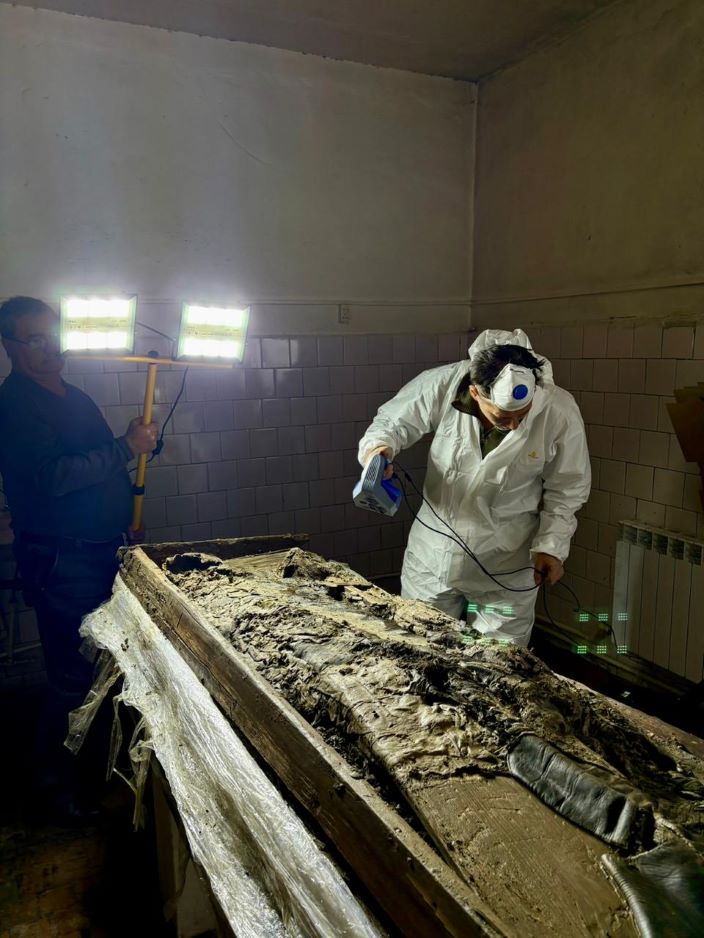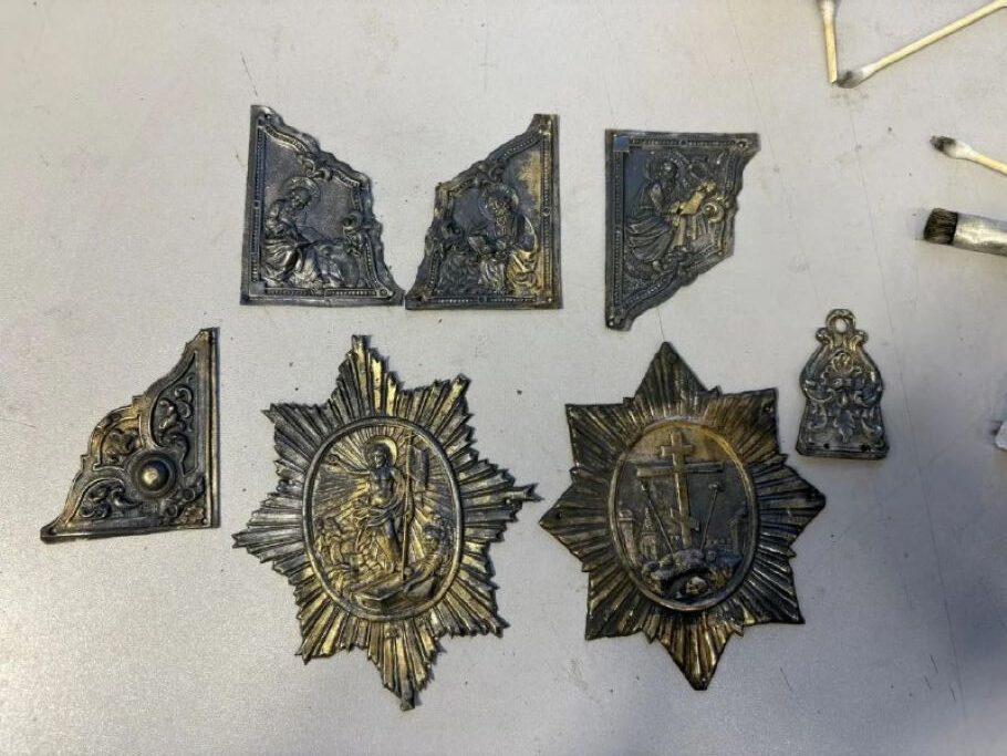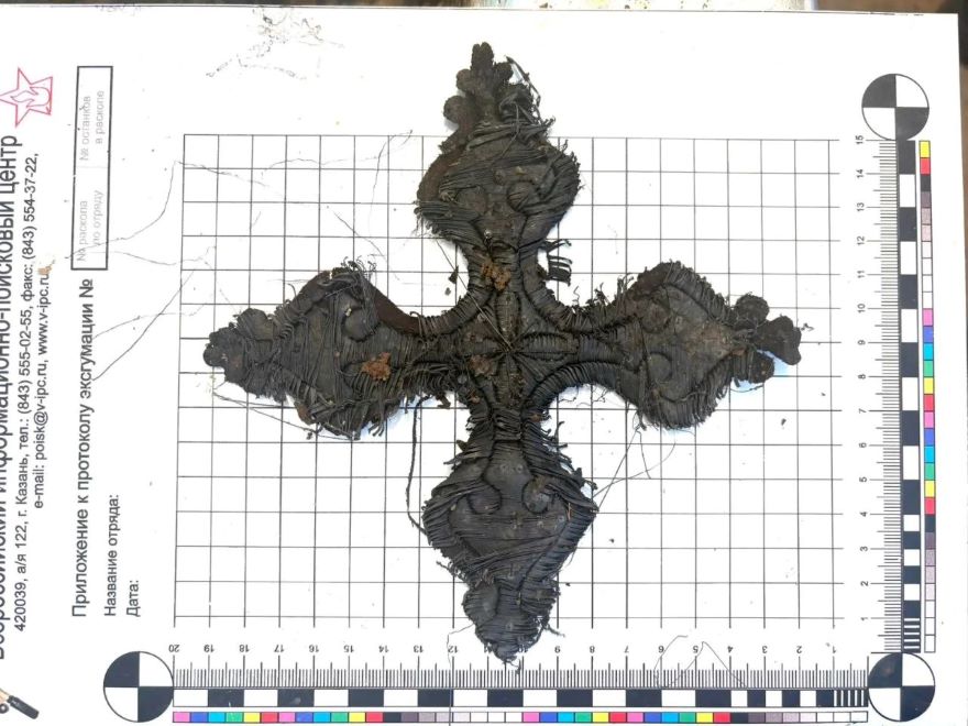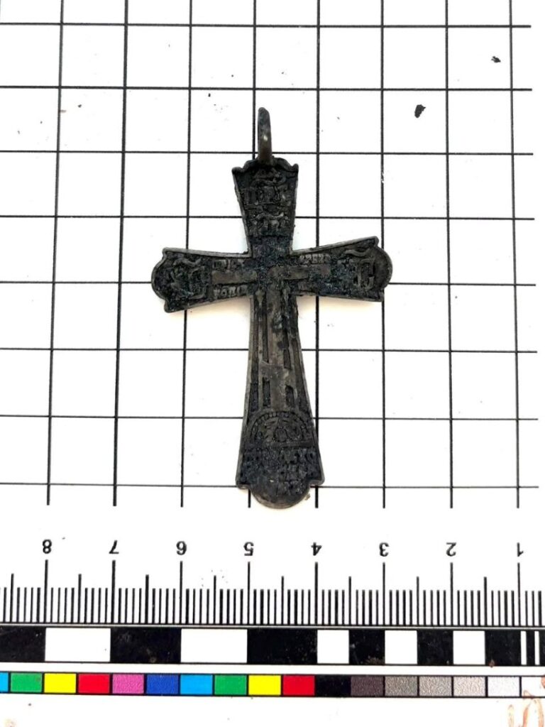 Если же говорить о погребении священника, которое относится к XIX веку, то сейчас мы провели работу по его расчистке. Сейчас также идут работы по реставрации оклада (декоративного покрытия обложки. – Прим. ред.) Евангелия, напрестольного креста (используемого во время церковной службы. – Прим. ред.), нательного креста, облачения, в том числе епитрахили (длинной расшитой ленты, надеваемой на шею. – Прим. ред.) и обуви. Всё это находится сейчас в процессе очистки и реставрации, а в дальнейшем уже будет принято решение о том, что с этими артефактами делать. Их можно будет передать в музей, либо же у них будет ещё какая-то судьба – это решится при завершении работы.