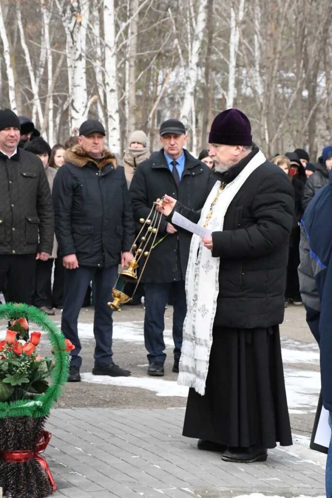 На митинге памяти присутствовали люди разных поколений. Жители возложили цветы, почтили погибших минутой молчания и вместе с настоятелем местного храма приняли участие в заупокойной молитве, затем была совершена заупокойная лития по невинно убиенным.