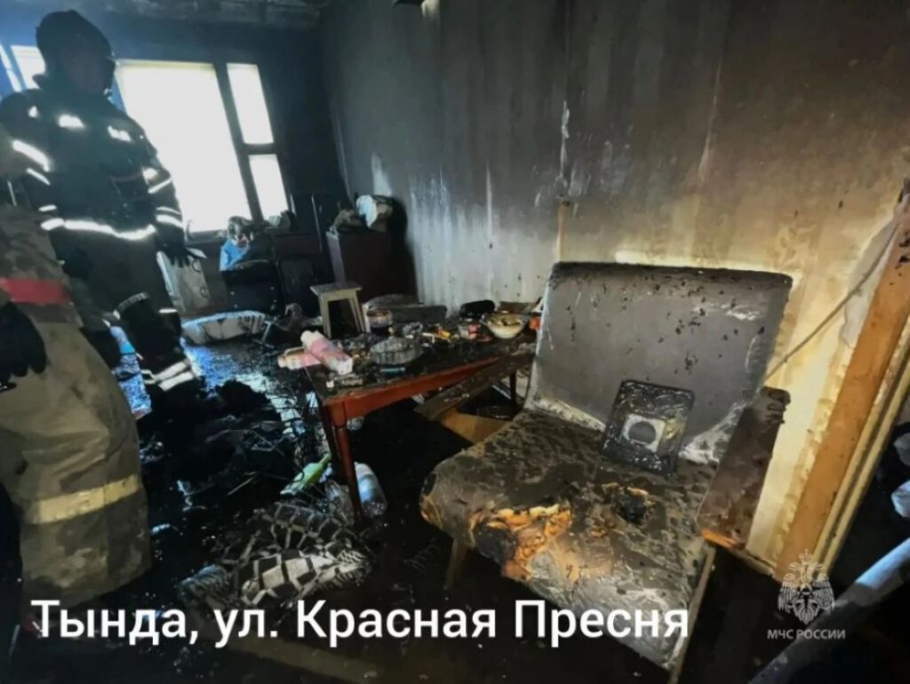 Так, в Тынде на улице Красная Пресня в квартире девятиэтажного жилого дома загорелись вещи. Пламя охватило всего 4 «квадрата», и 9 человек, находившиеся в тот момент в многоэтажке, успели эвакуироваться самостоятельно. Подоспевшая пара пожарных боевых расчётов потушила огонь, но после этого в закопчённой квартире специалисты наткнулись на жуткую находку – погибшего 78-летнего мужчину.