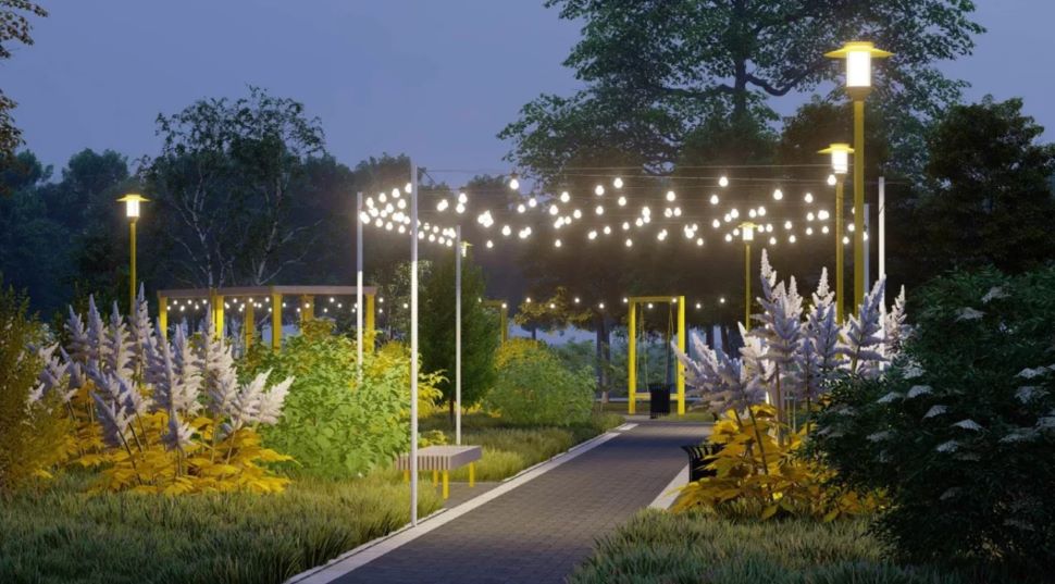 В этом году территорию превратят в современное и уютное общественное пространство, прекрасно подходящее для отдыха и прогулок. Там обустроят зоны для спокойного отдыха с качелями и скамейками, разместят уличное освещение и декоративные гирлянды. А визуальным акцентом послужит световая конструкция с надписью «#Страну меняют люди».