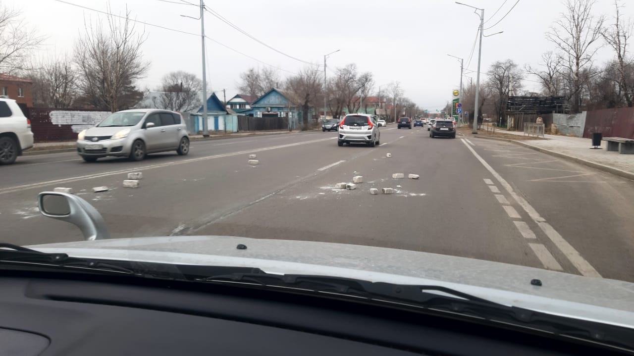 Движение на улице Театральной в Благовещенске затруднили кирпичи