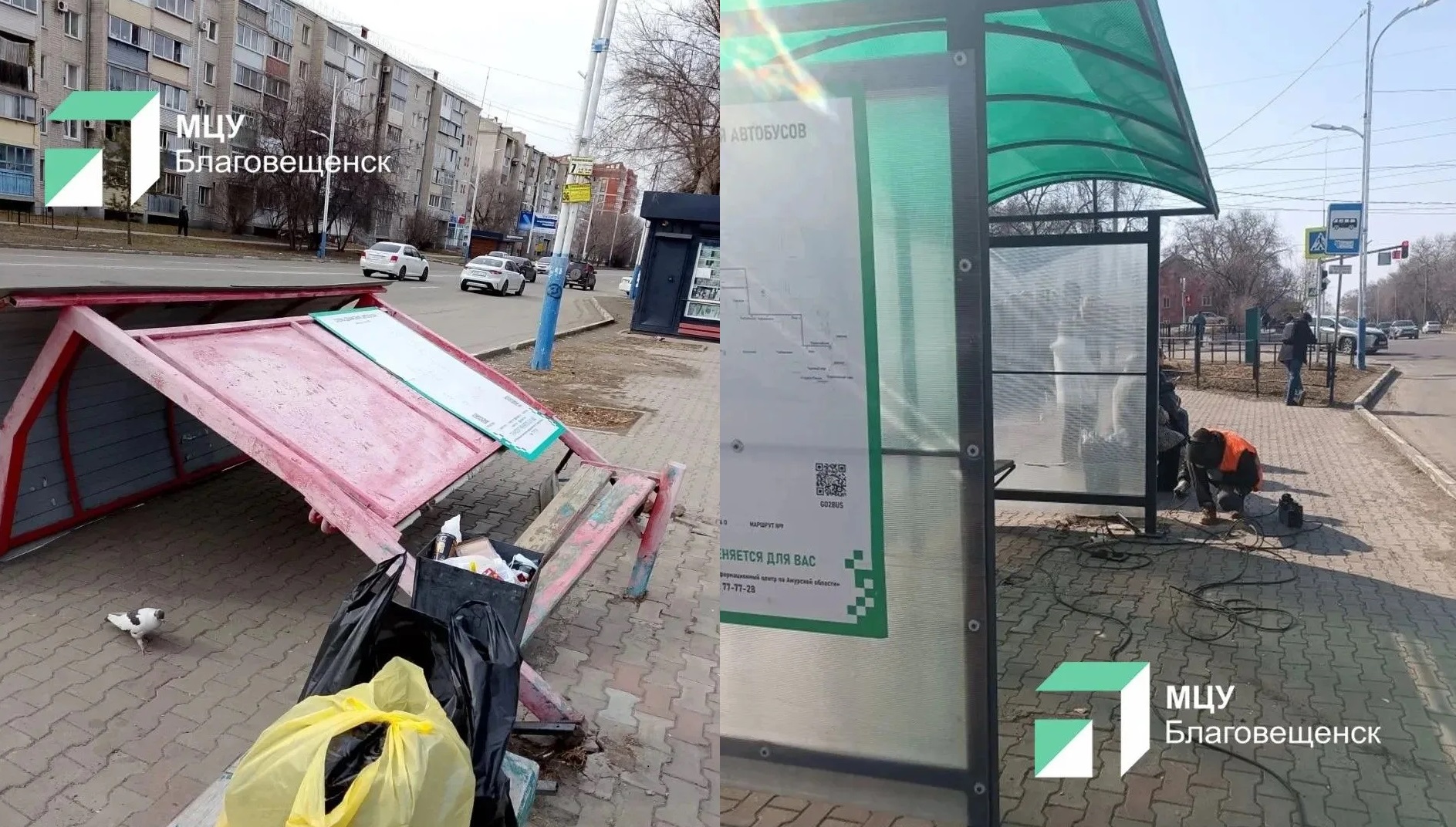 Упавшую остановку в Благовещенске заменили на новую
