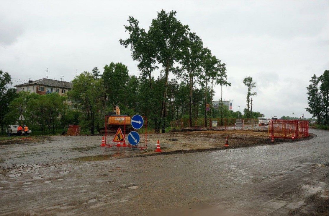Возле аэропорта Благовещенска начали ремонтировать дорогу