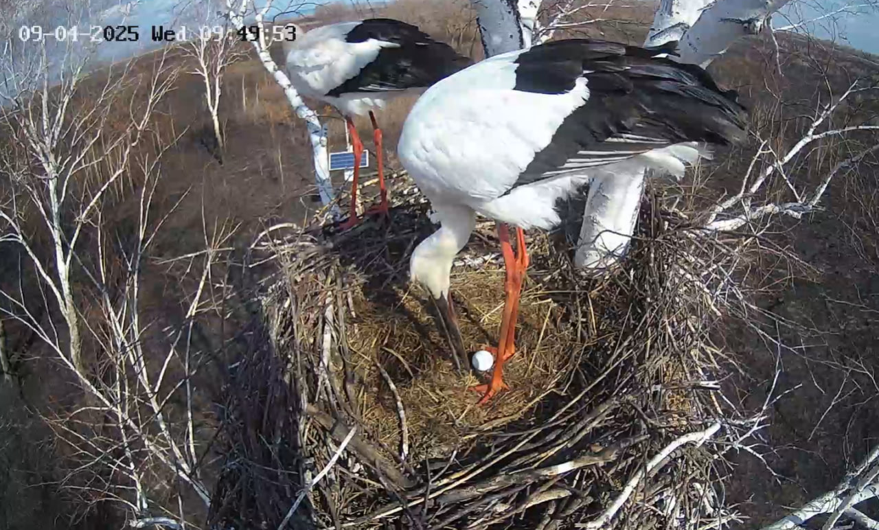 «С почином»: в Приамурье аисты отложили первое яйцо