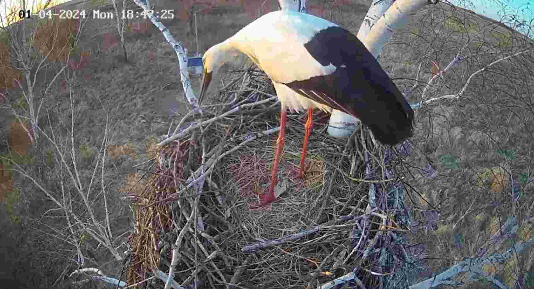 У пары аистов в Амурской области появилось первое яйцо. Об этом в своём телеграм-канале рассказал биолог Антон Сасин. «Как у них всё быстро», – заметил специалист. Фото: скриншот записи веб-камеры...