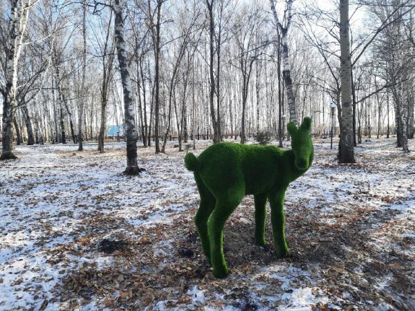 Среди снегов амурского парка появились вечнозеленые животные