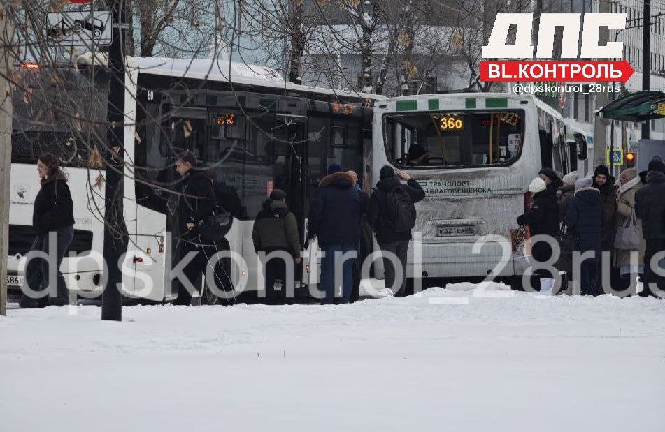 Сегодня, 1 декабря, в Благовещенске столкнулись два маршрутных автобуса. Кадры с места происшествия опубликовали в телеграм-канале dpskontrol_28rus. Столкновение общественного транспорта произошло в районе пересечения улиц Красноармейской и Шевченко, на остановке...