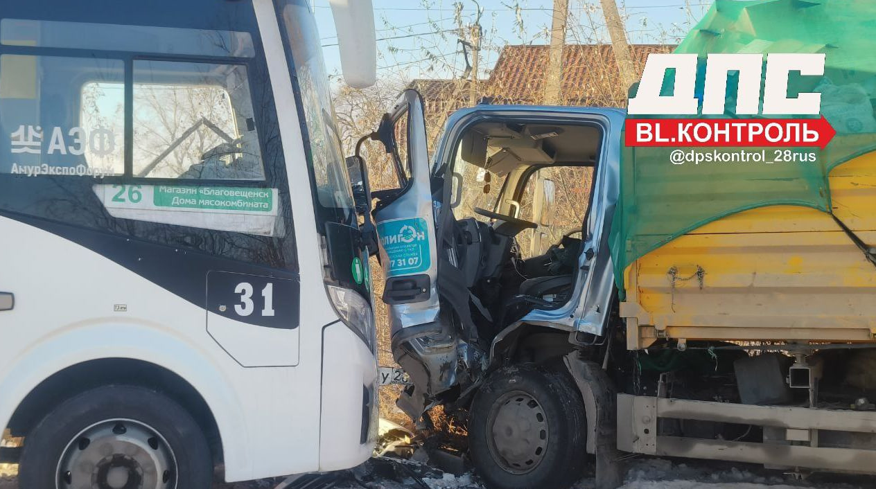 Пассажирский автобус и грузовик лоб в лоб столкнулись в Благовещенске (обновлено)