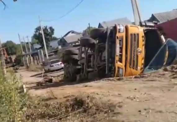 В Чигирях самосвал упал в канаву