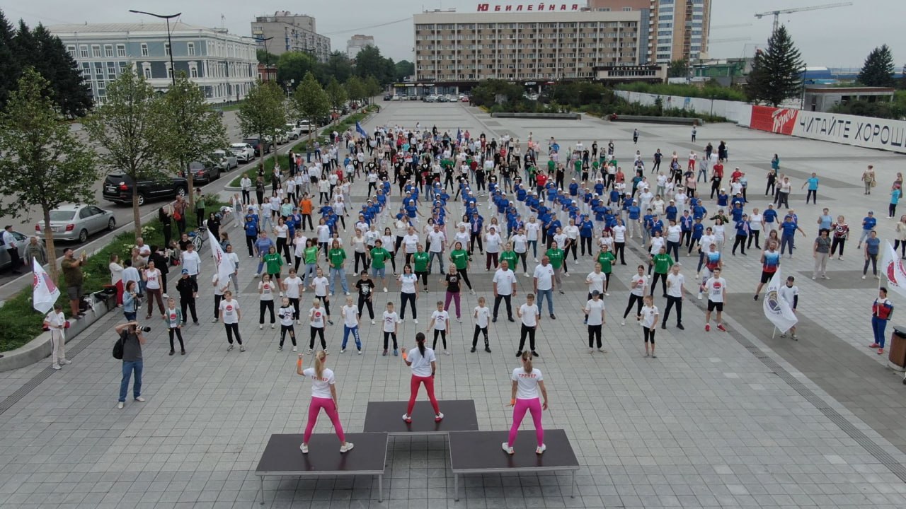 Три сотни благовещенцев вышли размяться на центральную площадь