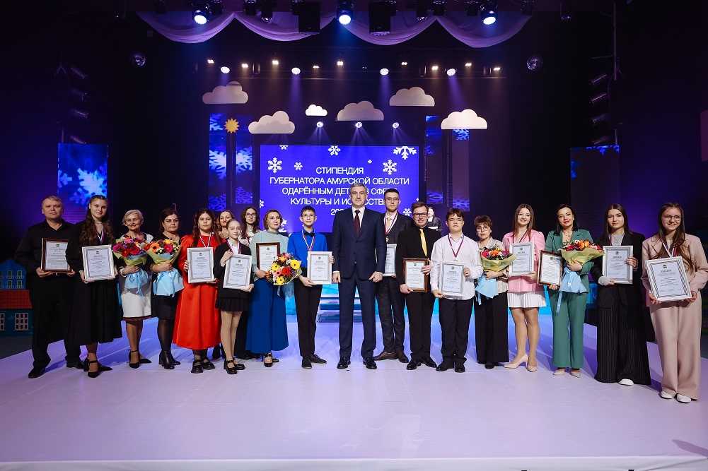 Василий Орлов лично поздравил стипендиатов – юных музыкантов, артистов, художников и танцоров из Благовещенска, Белогорска, Тынды и Тындинского округа. Стипендии губернатора одаренным детям в сфере культуры и искусства в регионе...