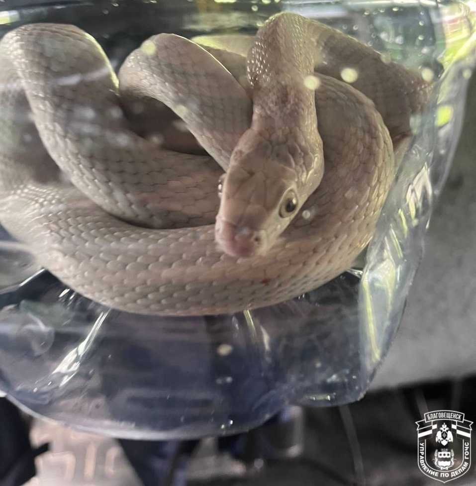 В городской поисково-спасательный отряд поступило сообщение, что в кустах недалеко от детской площадки на улице Институтской, 13/5 прохожие заметили небольшую змейку. К месту незамедлительно отправили специалистов, сообщили в управлении ГОЧС...