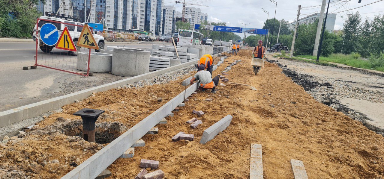 В микрорайоне Благовещенска разворотили тротуар вдоль Игнатьевского шоссе