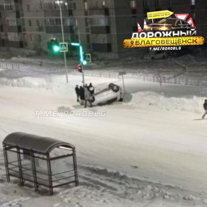 В Благовещенске перевернулось авто
