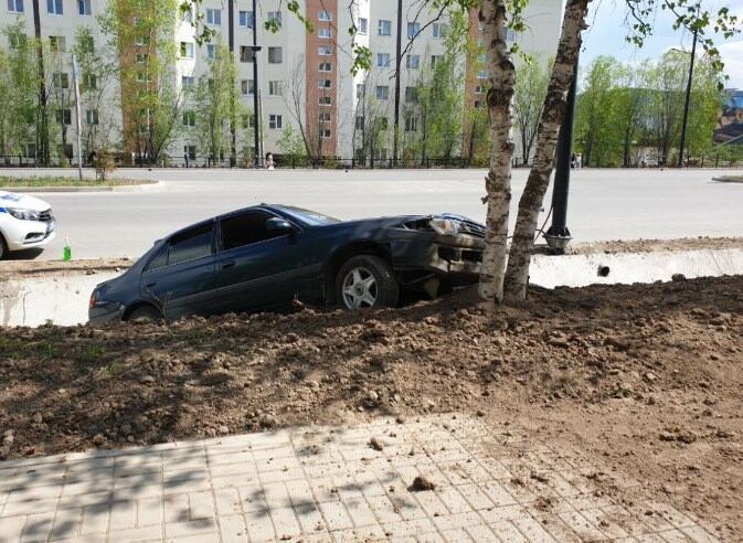 В центре Тынды автомобиль вылетел на тротуар и протаранил дерево