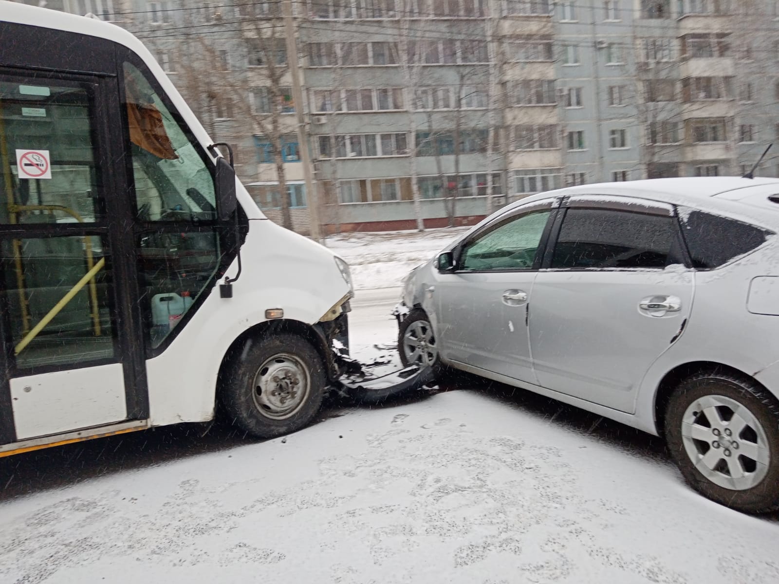 В Благовещенске маршрутка врезалась в легковой автомобиль