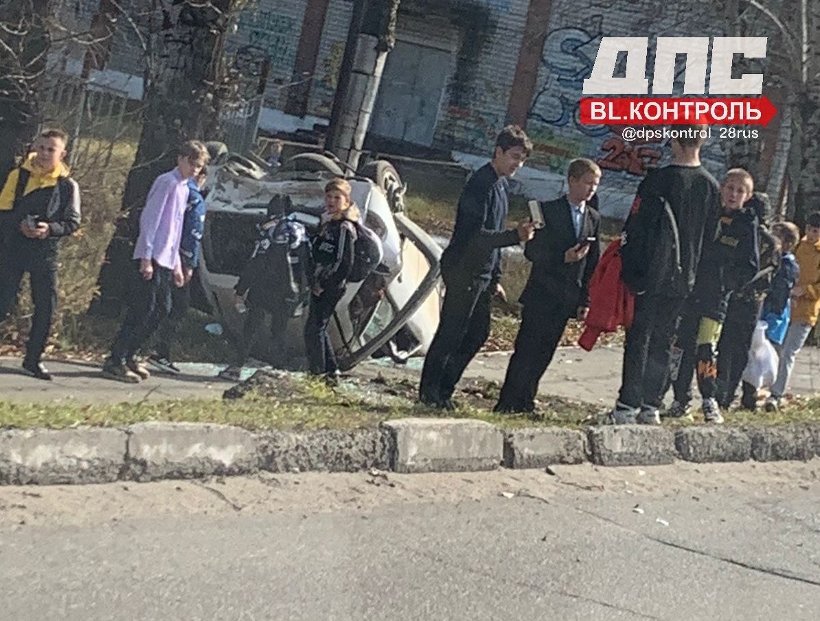 В Райчихинске возле школы перевернулся автомобиль