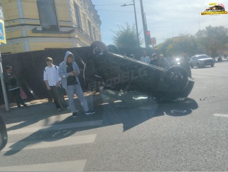 В центре Благовещенска на крышу перевернулась легковушка (обновлено)