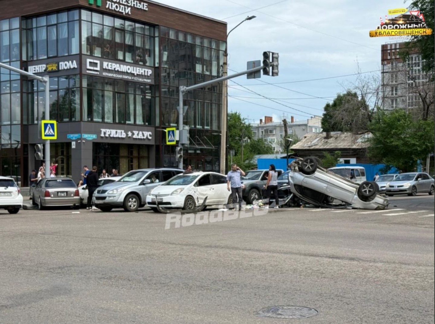 В центре Благовещенска жестко столкнулись сразу четыре машины