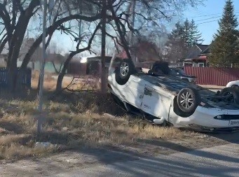 Легковушка легла на крышу в Свободном