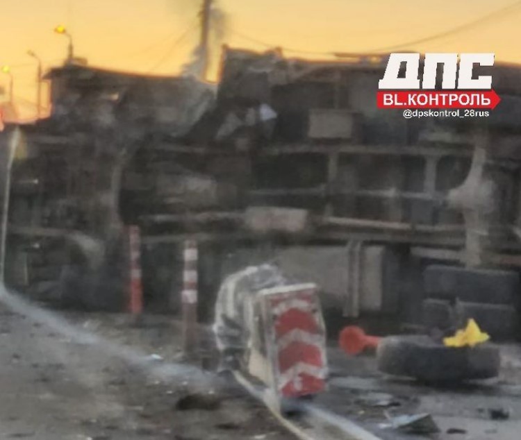 На посту перед Благовещенском перевернулась фура (обновлено)