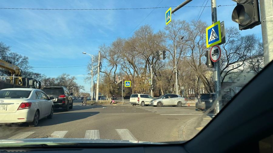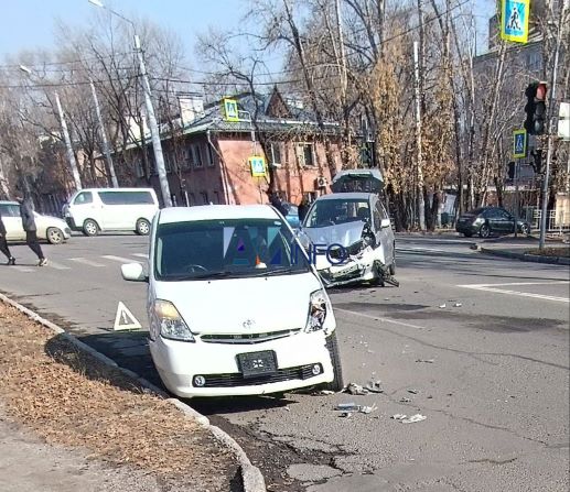 Осколки засыпали проезжую часть: в Благовещенске столкнулись две иномарки (обновлено)
