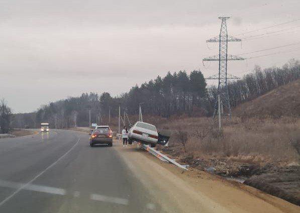 В Приамурье легковушка повисла на леерном ограждении