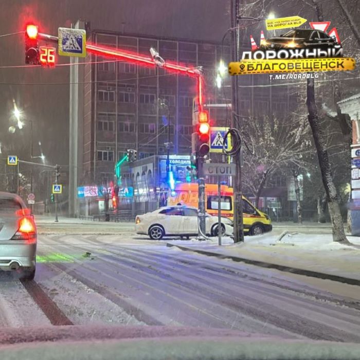 Из-за неработающего в центре Благовещенска светофора пострадал столб и несколько машин