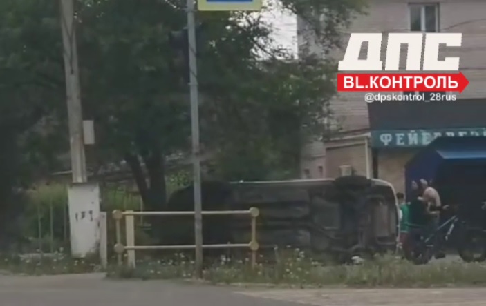 В центре Благовещенска перевернулся автомобиль (обновлено)