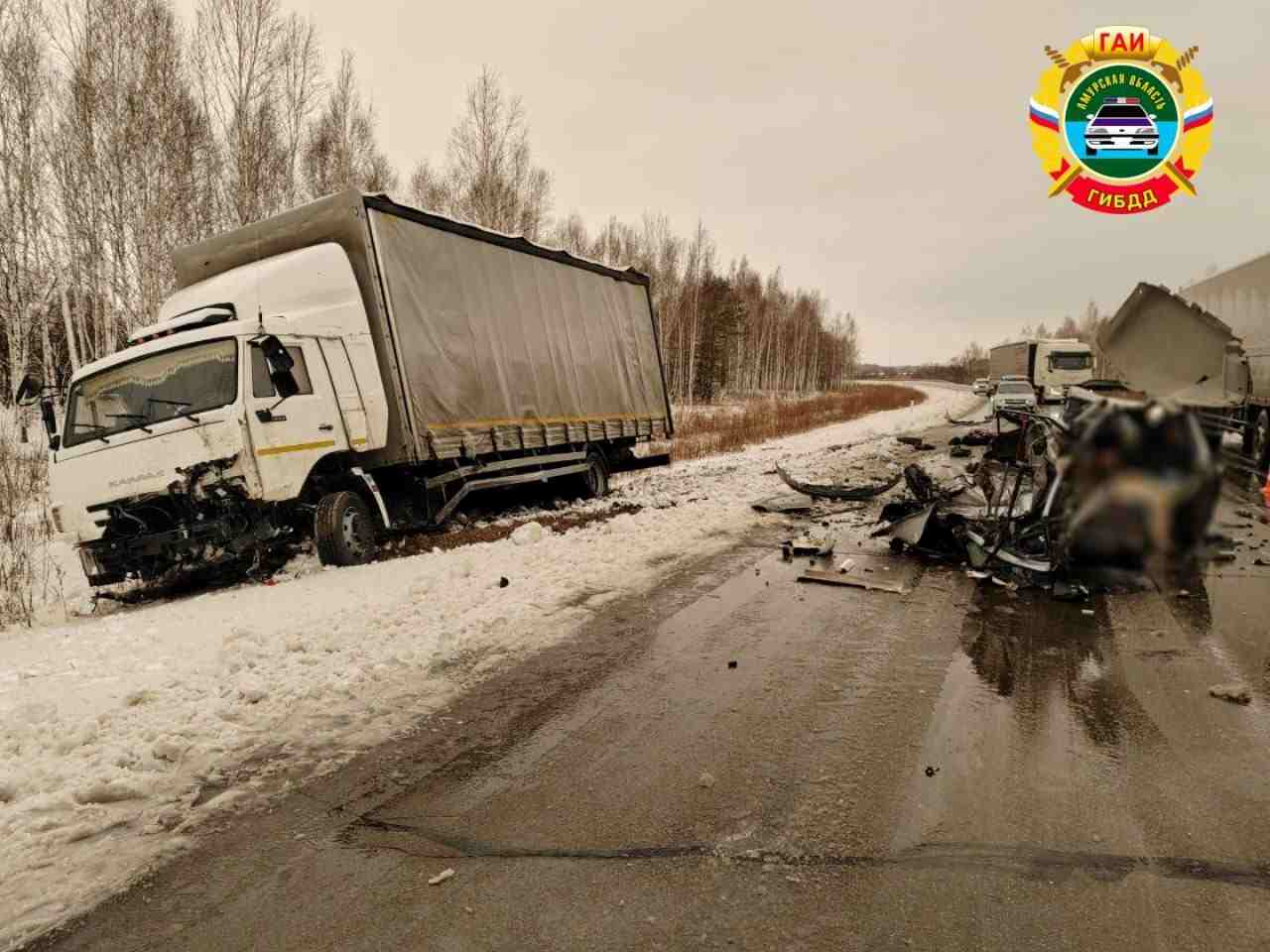 Погиб человек: в Приамурье КамАЗ столкнулся с легковушкой