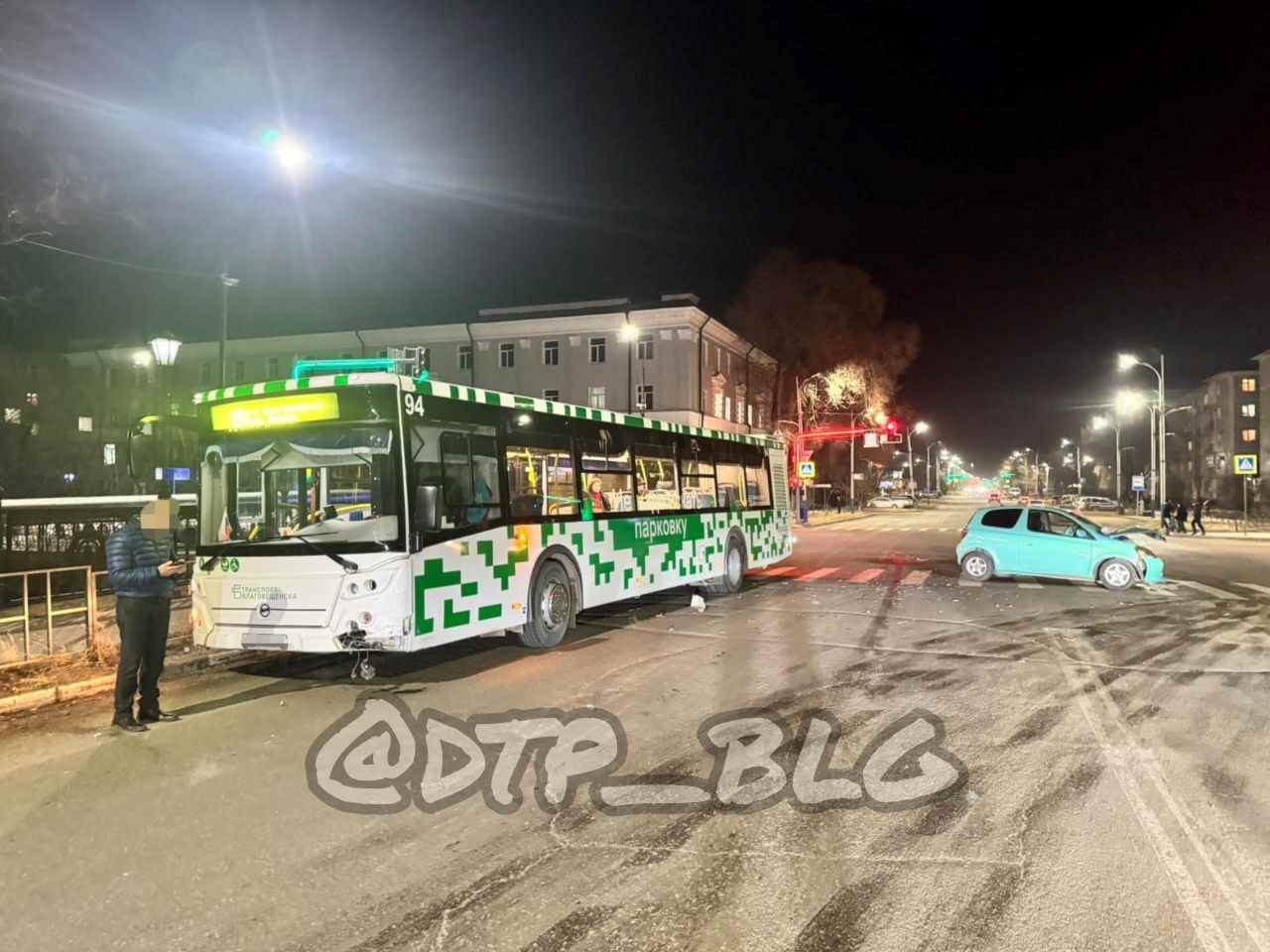 Пострадал человек: в Благовещенске легковушка столкнулась с автобусом