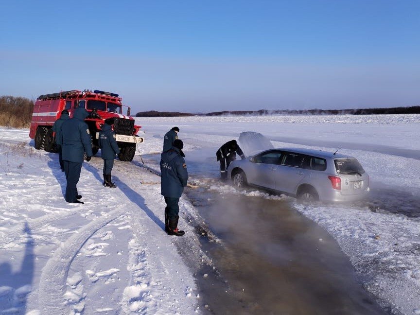 Работали спасатели: на Зее автомобиль провалился под лёд