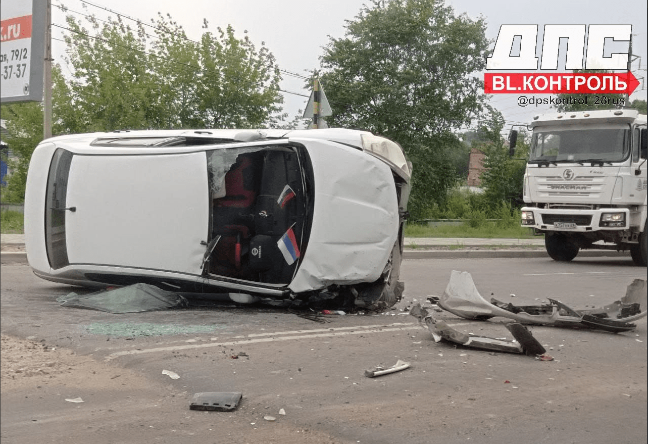 В микрорайоне Благовещенска произошло ДТП с переворотом