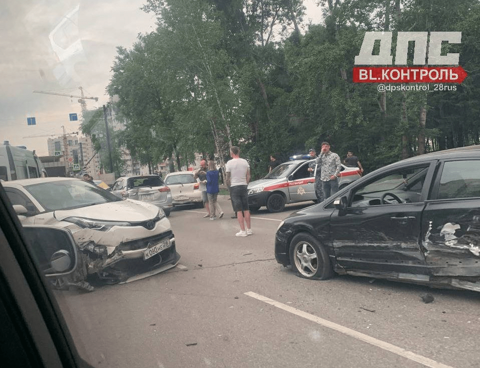 Вечером в субботу, 24 июня, в микрорайоне Благовещенска столкнулись шесть автомобилей. По информации очевидцев, в ДТП пострадали люди. Авария произошла в районе пересечения улиц Игнатьевское шоссе и Василенко. Машины получили...