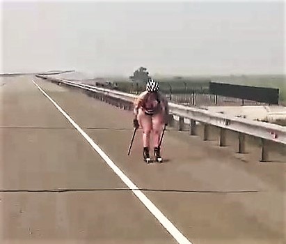 Лыжница устроила тренировку у международного моста через Амур
