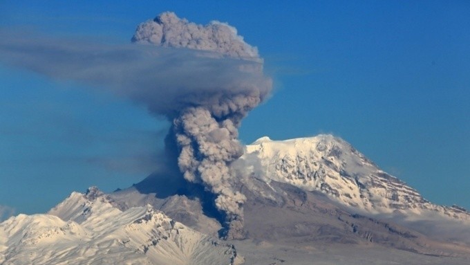 После извержения вулкана Шивелуч на Камчатке образовался огромный кратер