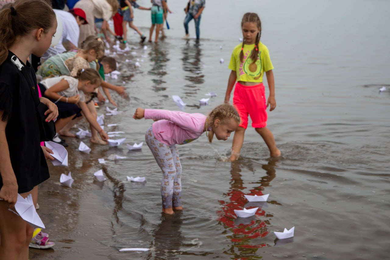 В Благовещенске в Амур спустили более 200 корабликов в память о погибших детях Донбасса