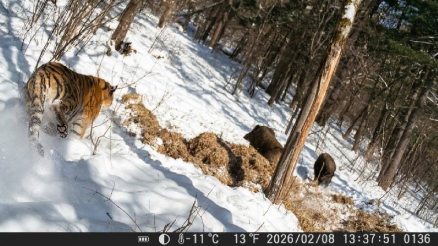 В Анучинском муниципальном округе Приморского края тигры живут настолько привольно, что даже охотиться предпочитают с комфортом. Один такой усатый-полосатый сделал видеосъёмку местных жителей поистине незабываемой. Как ему это удалось, объяснили...
