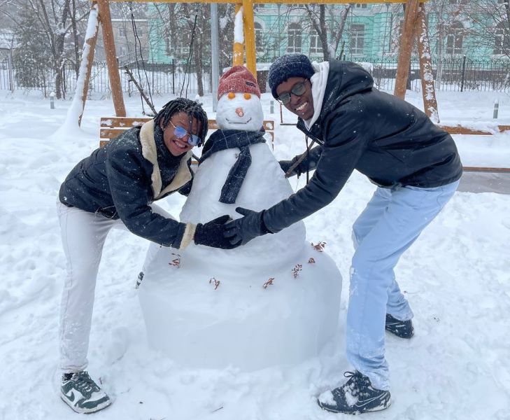 Африканские студенты преподнесли благовещенцам подарок из снега