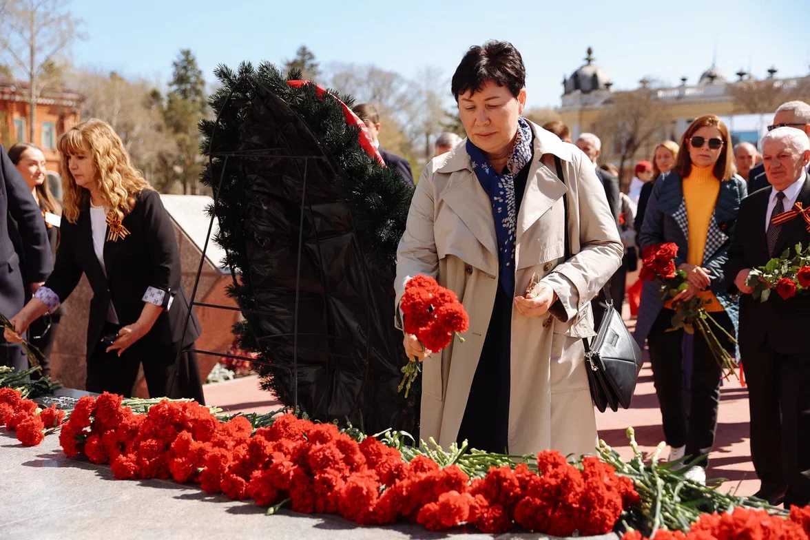 В Благовещенске прошла церемония возложения цветов к памятнику воинам-амурцам