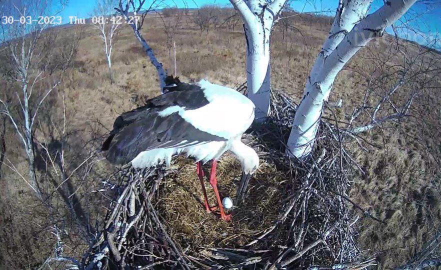 У пары аистов в Амурской области появилось первое яйцо. Об этом в своём телеграм-канале рассказал биолог Антон Сасин. «Как у них всё быстро», – заметил специалист. Фото: скриншот записи веб-камеры...