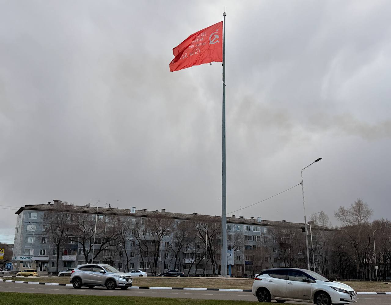 На самом высоком флагштоке Дальнего Востока подняли копию Знамени Победы
